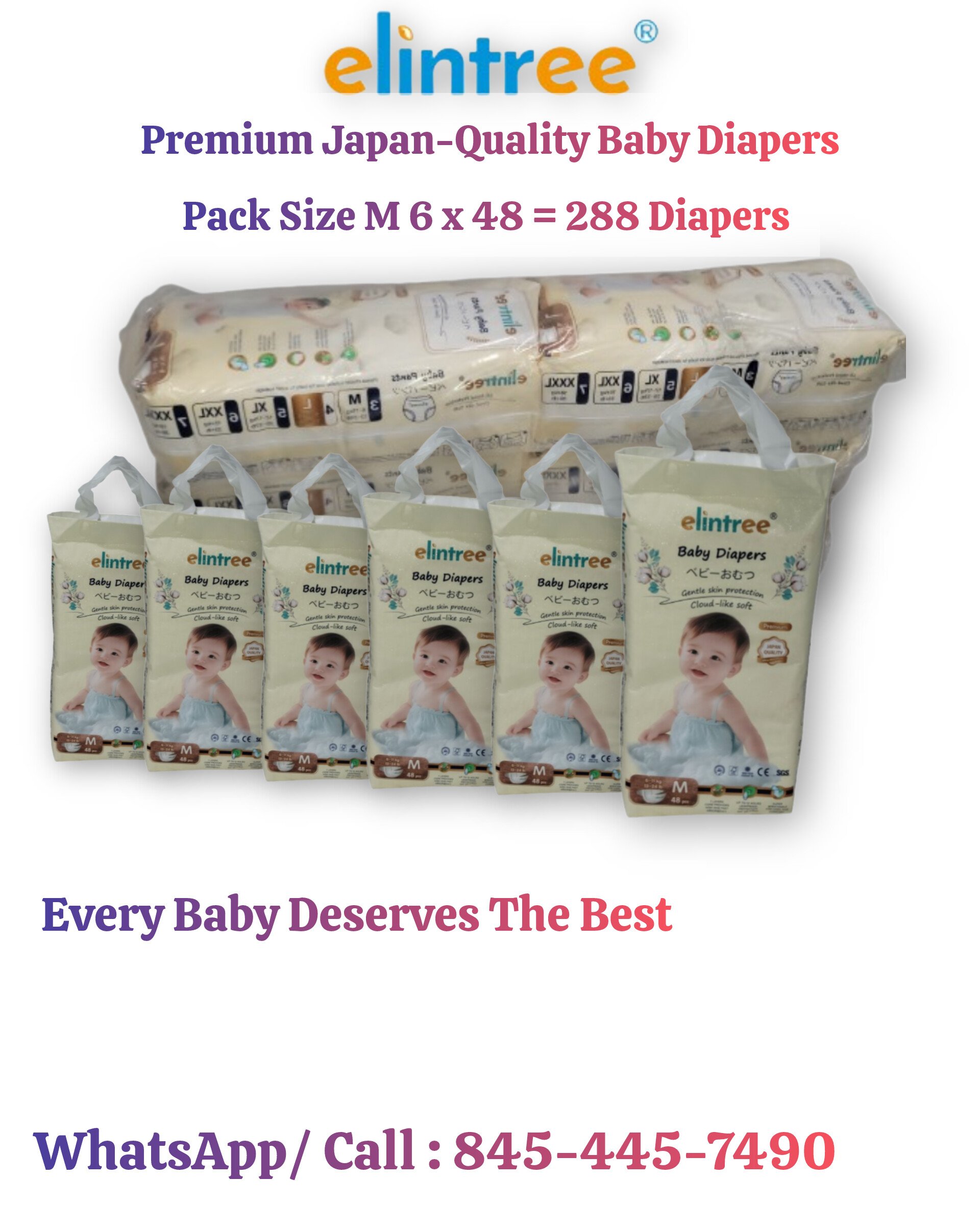 Elintree Premium Baby Diapers M-48 Pcs