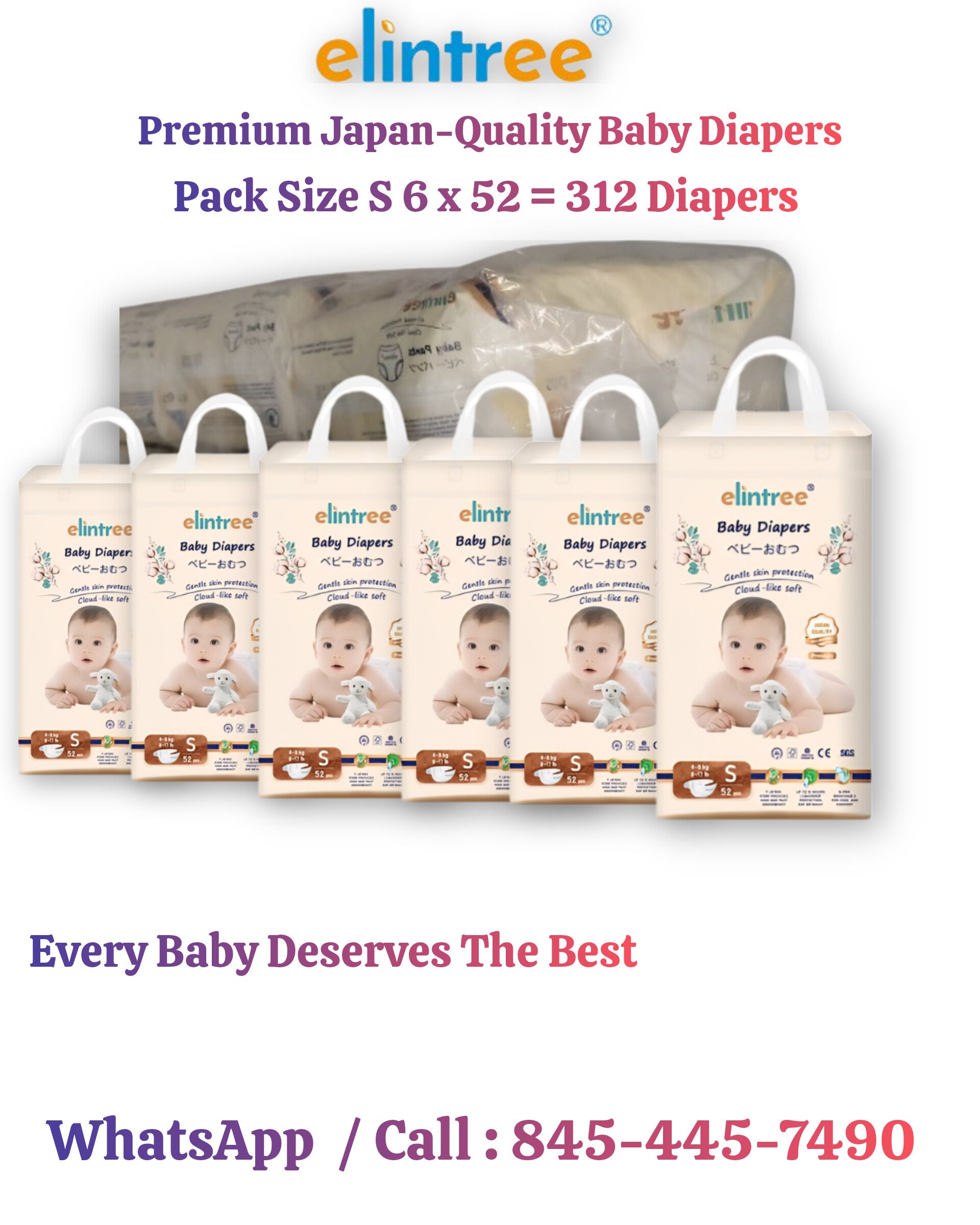 Elintree Premium Baby Diapers S -52 Pcs