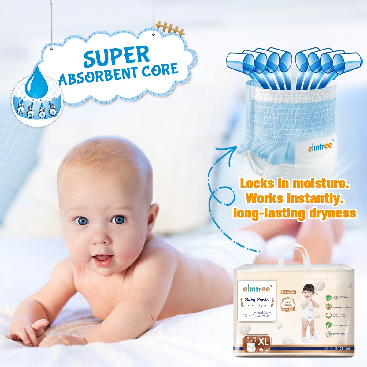 Elintree Premium Baby Pull Up XL -46 Pcs